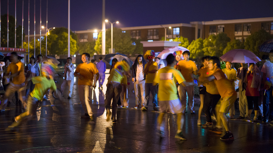 當(dāng)最后一名夜跑者回到主場地時,天公不作美地下起了雨,而且雨量還不小,但是所有在場人員都選擇了堅持,大家冒雨進行了兩輪激烈的“撕名牌”大戰(zhàn),僅管因為下雨場地濕猾,大家的熱情與活力卻迸發(fā)得更加熱烈,經(jīng)過三輪角逐,星星家電代表隊摘得本次名牌大戰(zhàn)的桂冠,在主持人宣布這一消息之時,家電全體在場人員在雨中雀躍歡呼,參賽隊員更是揮動著手中的“彩虹頭套”互擁互抱,場面極其壯觀!